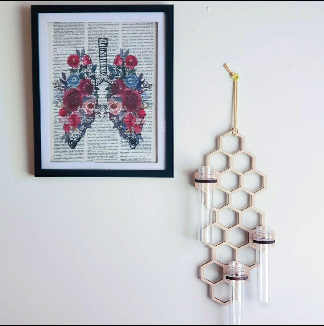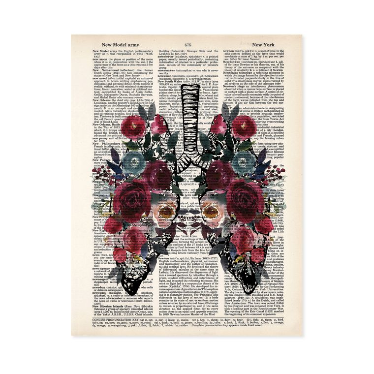 Vintage style print of lungs with watercolor flowers. Printed on salvaged dictionary pages selected at random ensuring each piece is unique. Prop it up to accessorize a shelf or hang it as a statement piece. Consider it your friendly reminder to take deep breaths and smell the roses.